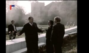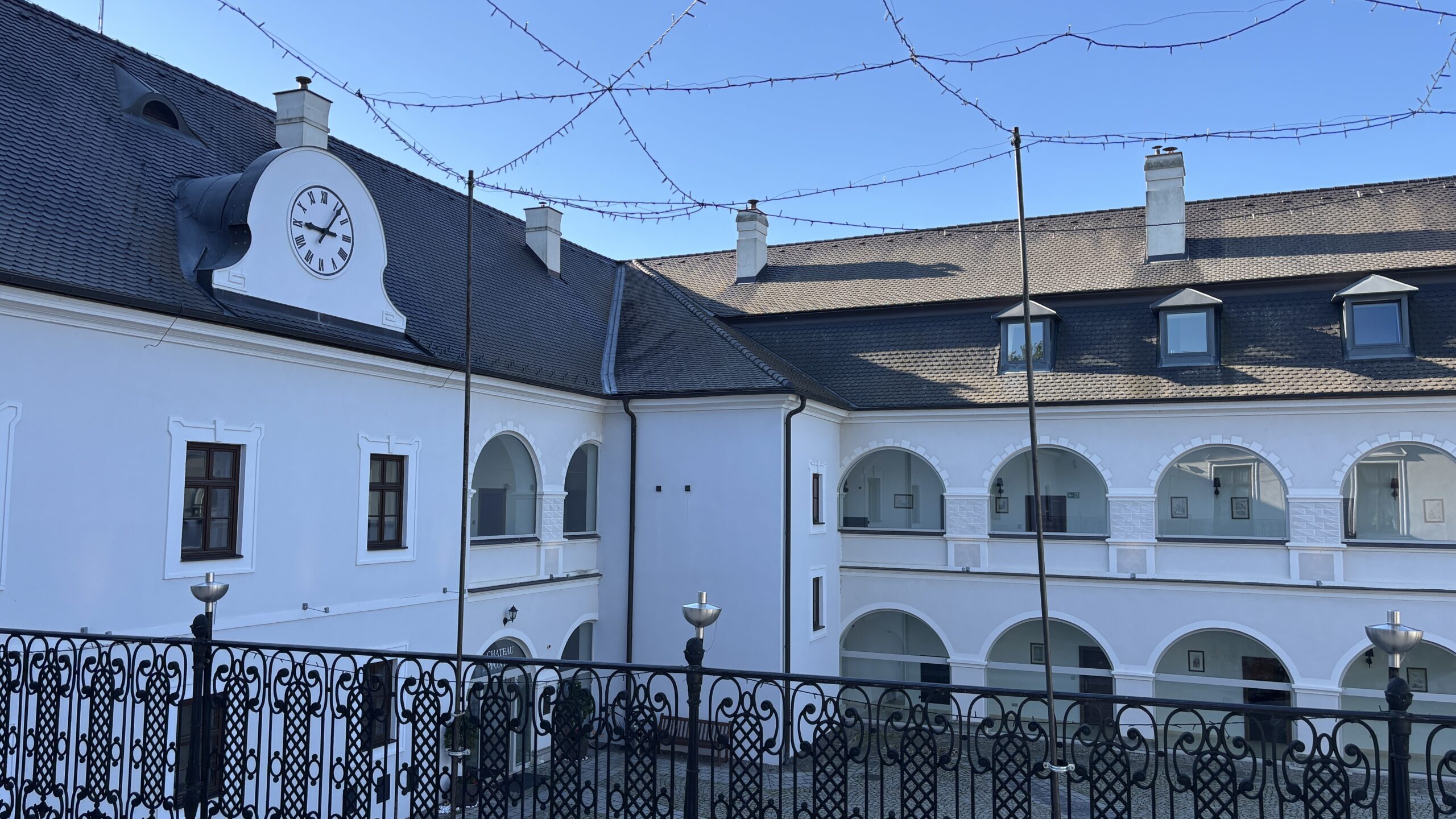 Oponický kaštieľ poslúžil filmárom ako kulisa pre národný výber, ktorý v ňom mal sídlo – vľavo záber z filmu Penelopa (zdroj:prehraj.to) režiséra Š. Uhera a vpravo súčasný stav.