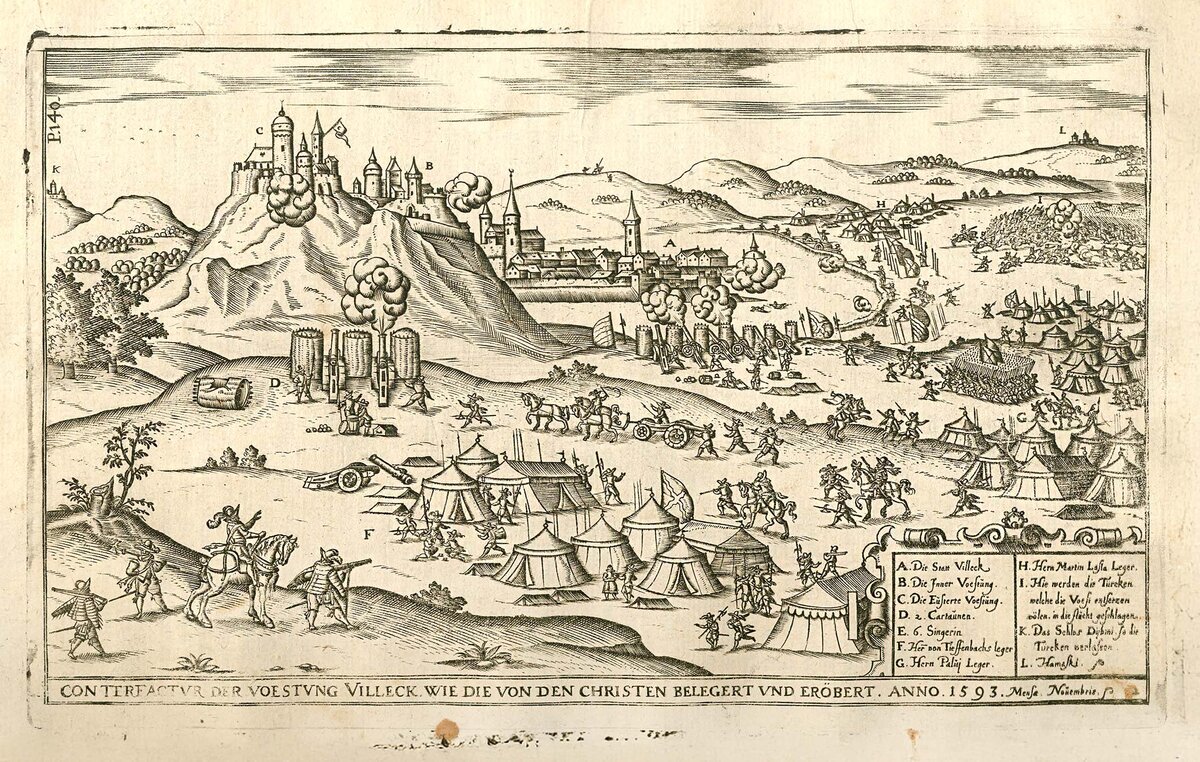Fiľakovo 1593. In: Ortelius, Hieronymus: Ortelius redivivus et continuatus, Oder Der Ungarischen Kriegs – Empörungen…. Franckfurt am Mayn, 1665, s. 140. snkIB 4073/1-2